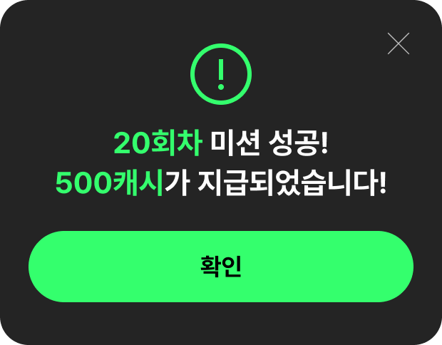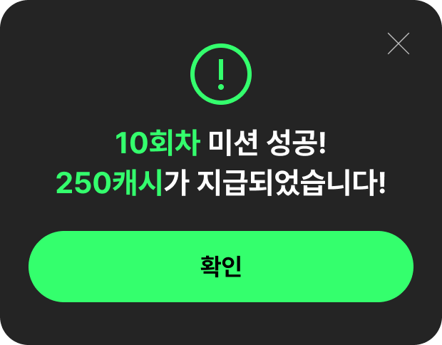스트리밍 이용시 매일 20캐시 지급 10회차에는 보너스 250 캐시를 20회차에는 보너스 500캐시를 드려요